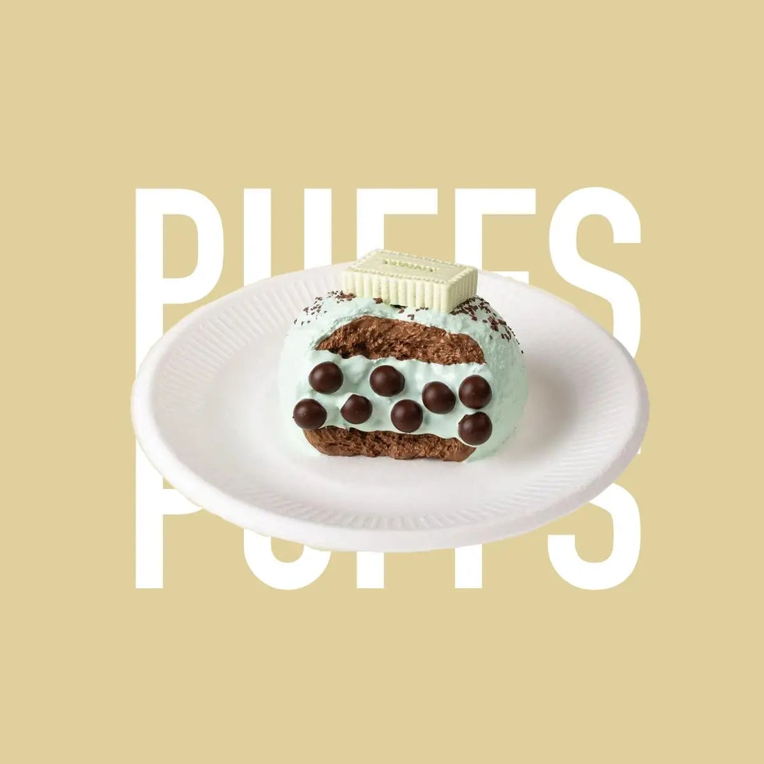 こうして、ミントチョコレートシュークリームスクイーズが誕生しました!ミントグリーンの外側には細かいチョコレートが散りばめられ、濃厚なチョコレートのフィリングの中央にはチョコチップがきれいに並び、上にはクッキーが飾られています。本物のデザートのように見えて、とても可愛くて誘惑的です。